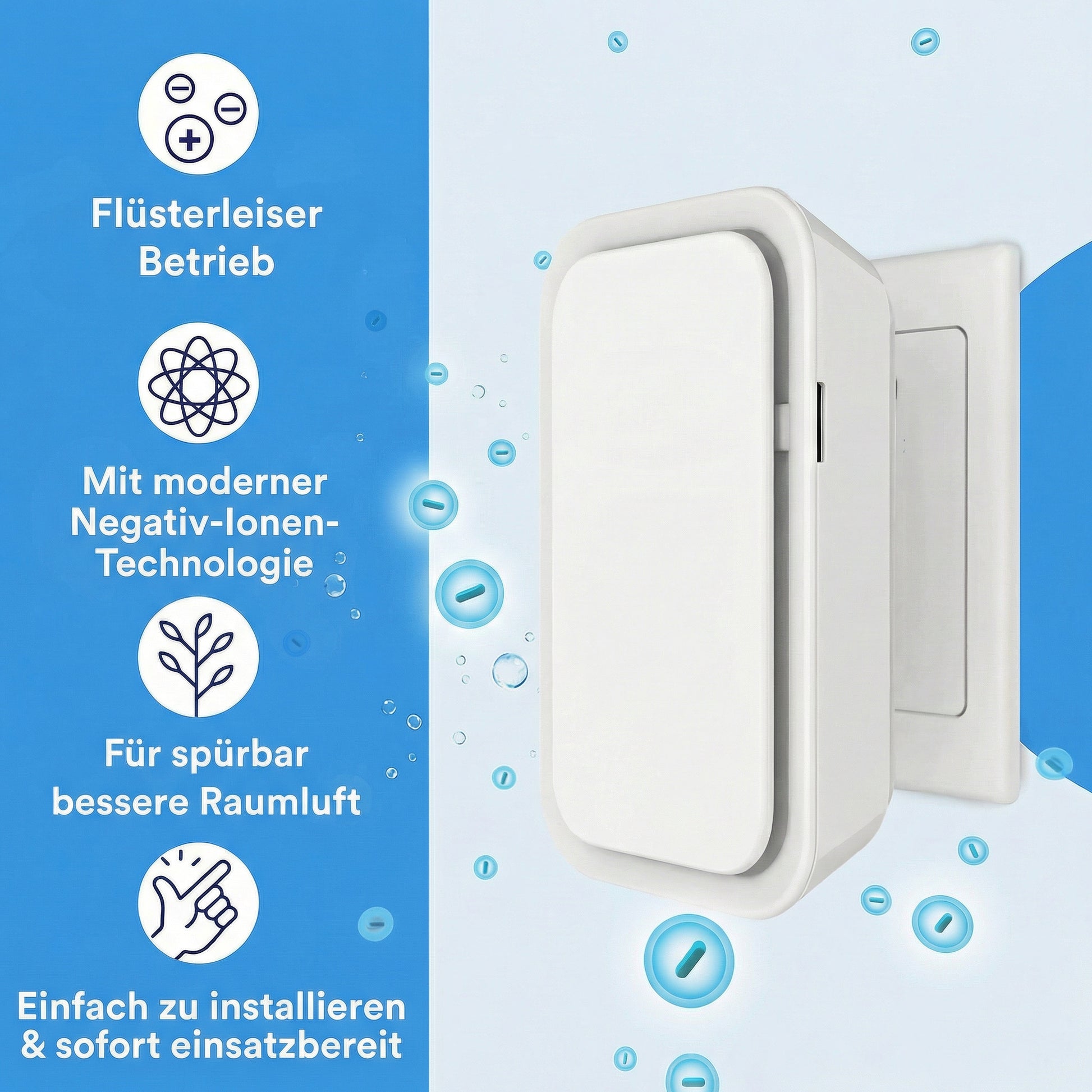 ✔️ Negatiiviset ionit sitovat ilmassa leijuvat pölypunkit, siitepölyn ja lemmikkieläinten hilseen → hiukkaset laskeutuvat pinnoille ennen kuin ehdit hengittää niitä